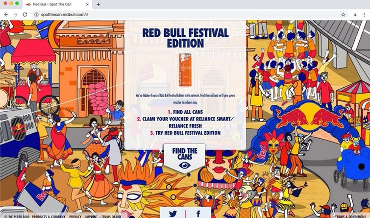 Following the success of the Red Bull Yellow Edition, ARTHAT Studio created an interactive illustration for the Red Bull Festival (Orange) Edition keeping in mind both the brand values as well as the visual identity of Red Bull. The sporty and energetic image camouflaged X cans of the Red Bull Orange Edition, which people were encouraged to locate in order to win Reliance Smart/Reliance Fresh Vouchers and a free can of the drink, delivered to their address. The campaign worked to create a viral awareness, as well as commit the new product to the memory of the customers.